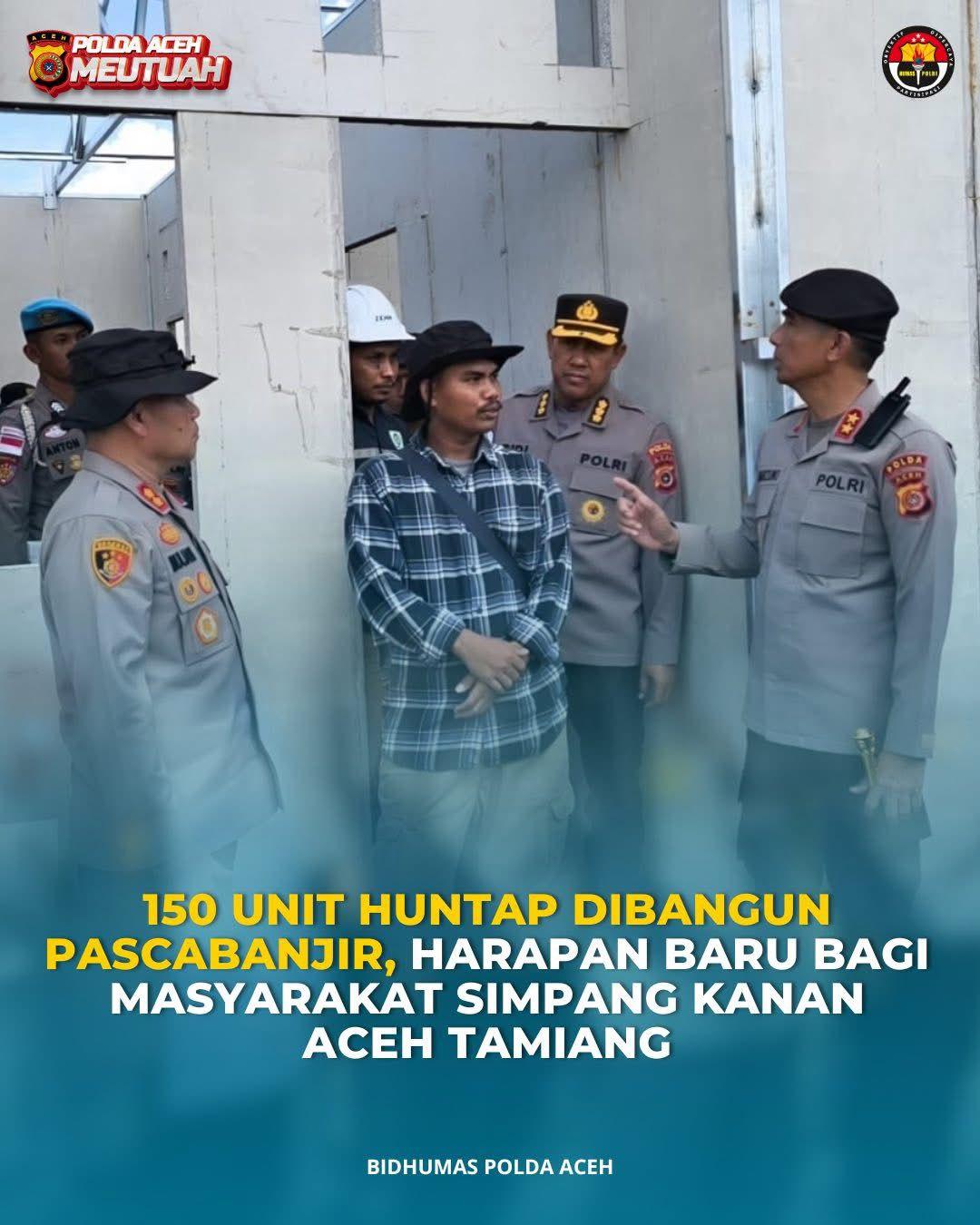 Seiring progres pembangunan huntap tersebut, Kapolda Aceh Irjen Pol. Drs.Ali Basyah, M.M, pada Jum’at, 20 Februari 2026, kembali meninjau ke lokasi sebagai komitmen nyata memastikan sejauh mana progres pembangunan huntap untuk masyarakat korban banjir di daerah itu,