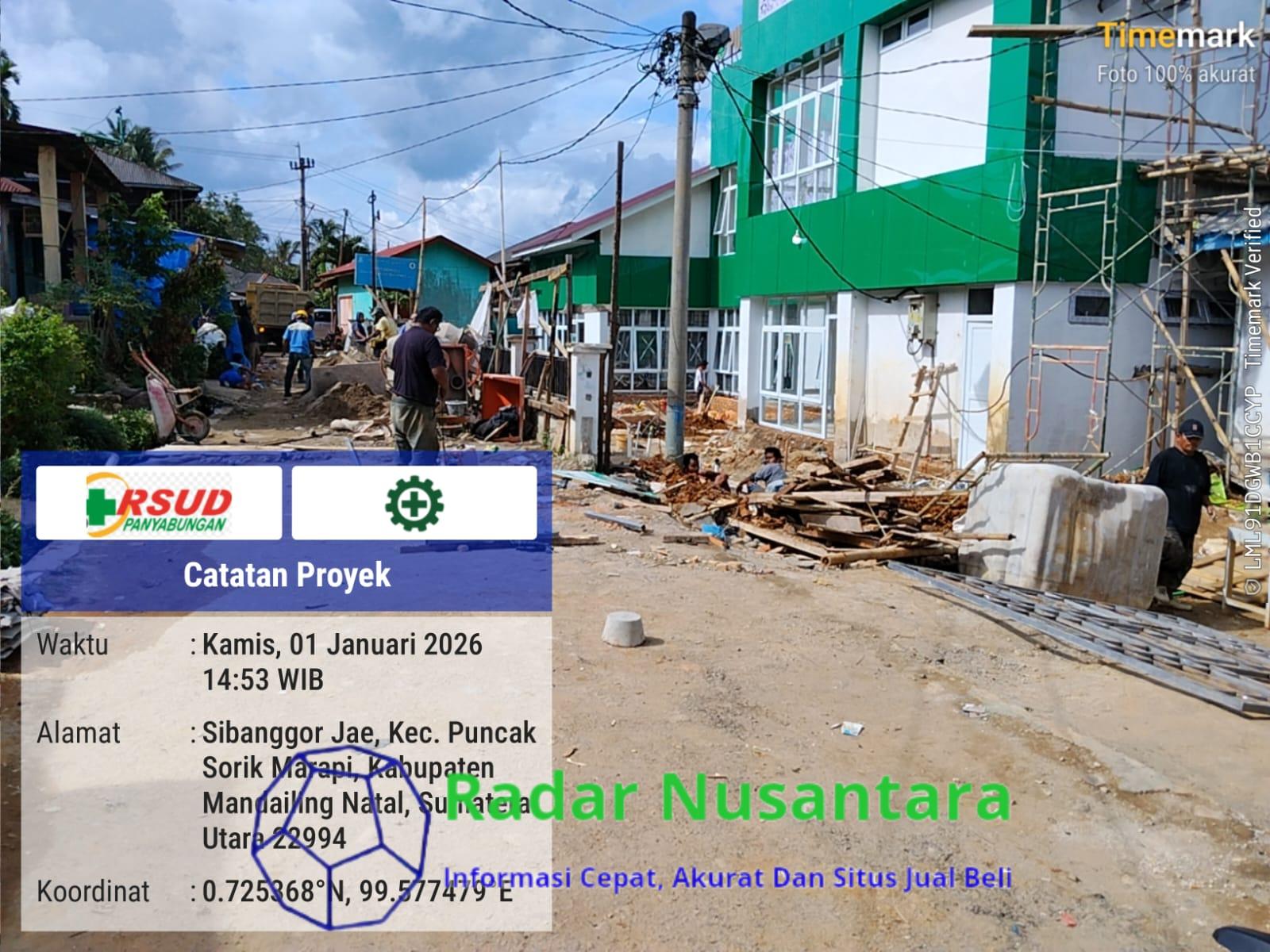 Radar Nusantara, Mandailing Natal, ~ Memasuki hari pertama tahun 2026, pekerjaan Pengembangan atau Renovasi Puskesmas Sibanggor Jae di Kabupaten Mandailing Natal masih terlihat berlangsung di lapangan. Padahal, berdasarkan papan proyek, jadwal pelaksanaan seharusnya berakhir pada 25 Desember 2025.