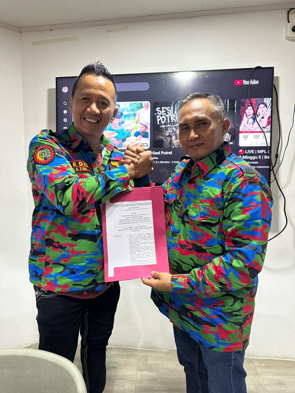 Radar Nusantara, BENGKALIS (RIAU) – Sabtu, 25 April 2026 di Pekanbaru, Riau, Ketua Dewan Pimpinan Daerah (DPD) Federasi-Serikat Pekerja Transportasi Indonesia (F-SPTI) Provinsi Riau, Dedi Kusnadi alias Dedi Boxer resmi menyerahkan Surat Keputusan (SK) Ketua Dewan Pimpinan Cabang (DPC) F-SPTI Kabupaten Bengkalis kepada Muhammad Kamil Ikhsan untuk masa bhakti 2026-2027.
