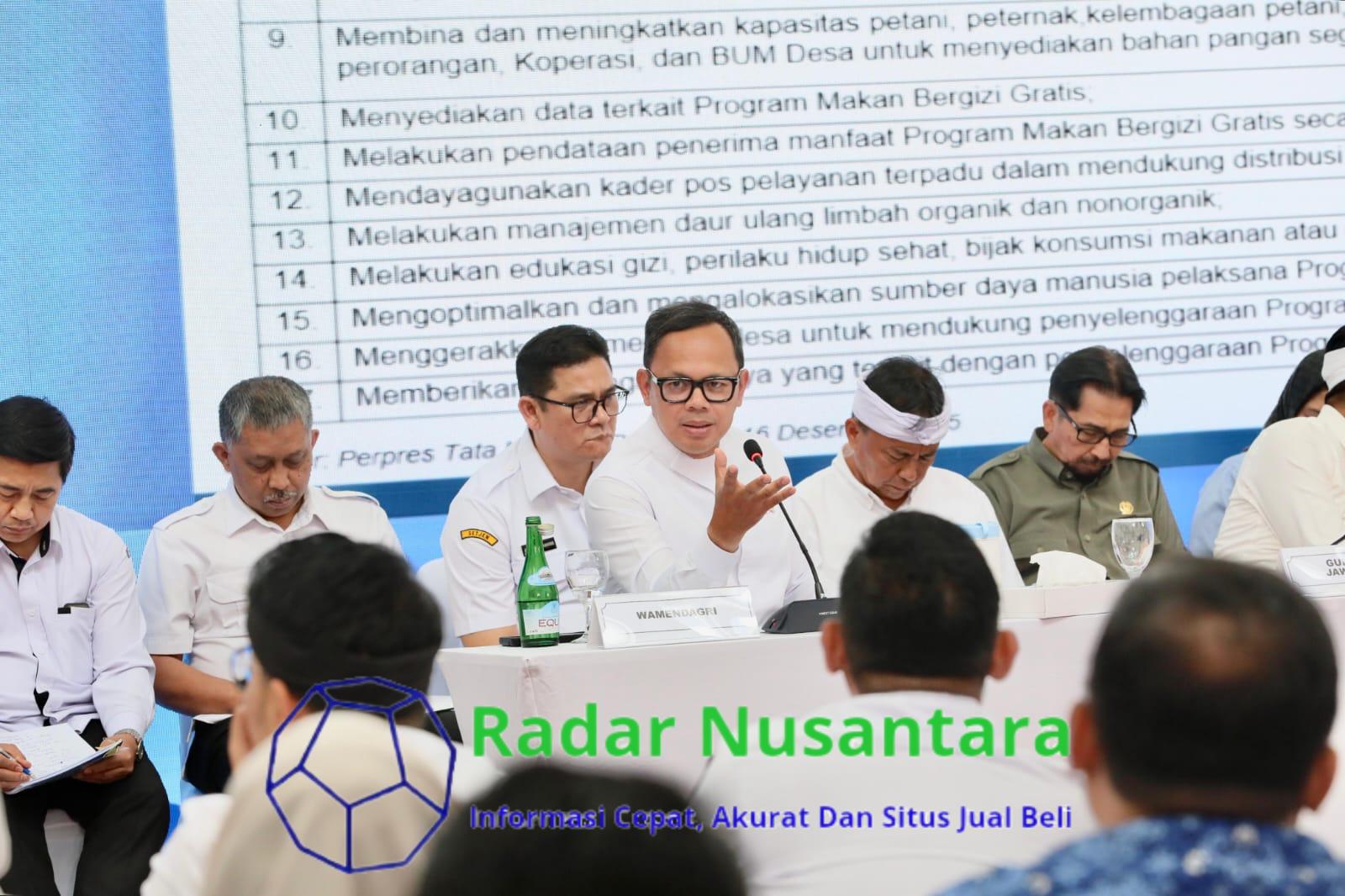 Bandung – Wakil Menteri Dalam Negeri (Wamendagri) Bima Arya Sugiarto meminta kepala daerah mencermati isi Surat Edaran (SE) Menteri Dalam Negeri Nomor 500.1/9653/SJ tentang Pelaksanaan Koordinasi Pemerintah Daerah (Pemda) dalam Pelaksanaan Makan Bergizi Gratis (MBG).