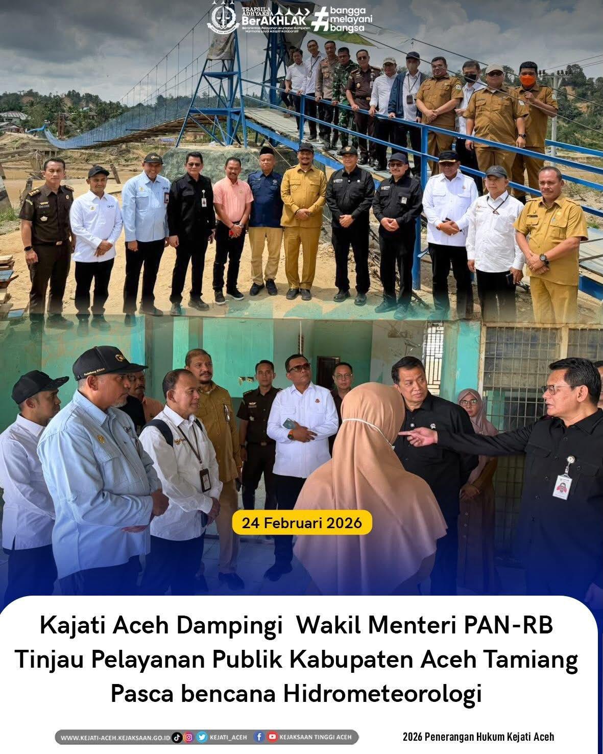 Kegiatan ini turut dihadiri oleh unsur Forkopimda setempat dan jajaran pemerintah daerah. Diharapkan melalui kunjungan ini, pelayanan publik di Kabupaten Aceh Tamiang dapat semakin diperkuat, sehingga proses pemulihan pasca bencana hidrometeorologi berjalan efektif dan tepat sasaran.