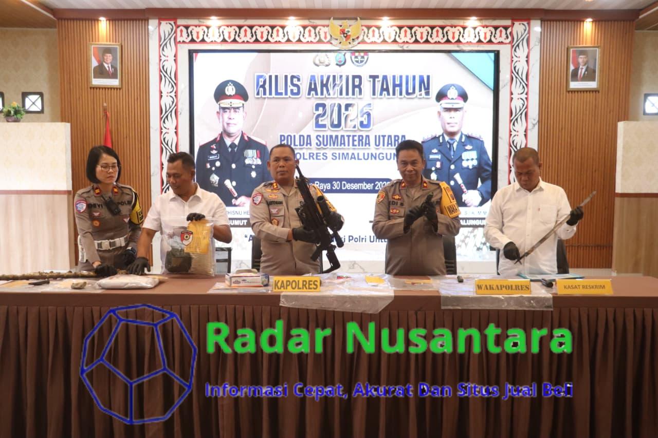 Radar Nusantara, SIMALUNGUN – Sepanjang tahun 2025, Satuan Reserse Narkoba Polres Simalungun menunjukkan kinerja yang semakin solid dan agresif dalam memerangi peredaran narkotika. Hal tersebut terungkap dalam Rilis Akhir Tahun 2025 Polres Simalungun Polda Sumatera Utara yang digelar oleh Kapolres Simalungun AKBP Marganda Aritonang, S.H., S.I.K., M.M., pada Selasa, 30 Desember 2025, bertempat di Aula Andar Siahaan Mako Polres Simalungun.
