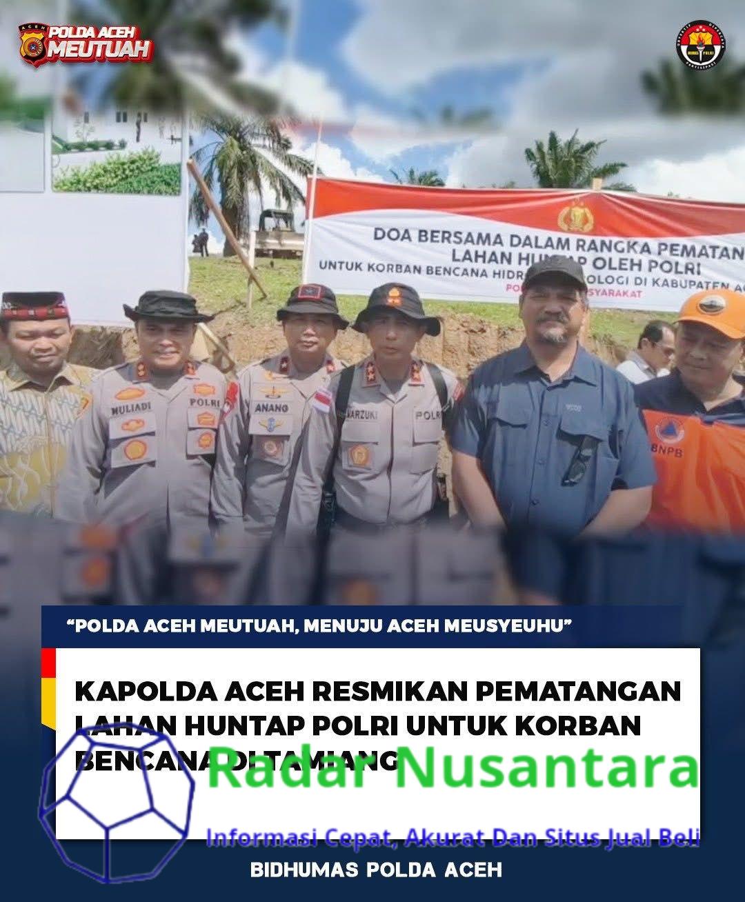 Radar Nusantara, Kuala Simpang — Kapolda Aceh Irjen Pol. Drs. Marzuki Ali Basyah meresmikan pematangan lahan pembangunan Hunian Tetap (Huntap) milik Polri bagi korban bencana banjir di Kabupaten Aceh Tamiang. Peresmian tersebut berlangsung di lahan perkebunan PTPN I Desa Simpang Kanan, Kecamatan Kejuruan Muda, Selasa, 13 Januari 2026.