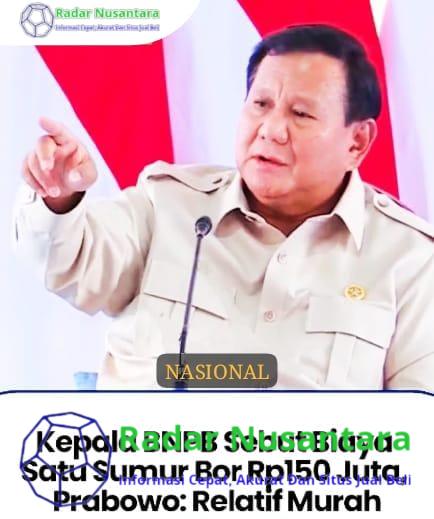 Radar Nusantara, Jakarta – Presiden Prabowo Subianto Prabowo tampak terkejut mendengar biaya membangun sejumlah sumur bor untuk memenuhi kebutuhan air warga. Sebab menurutnya biaya itu dinilai jauh lebih murah dari perkiraan.