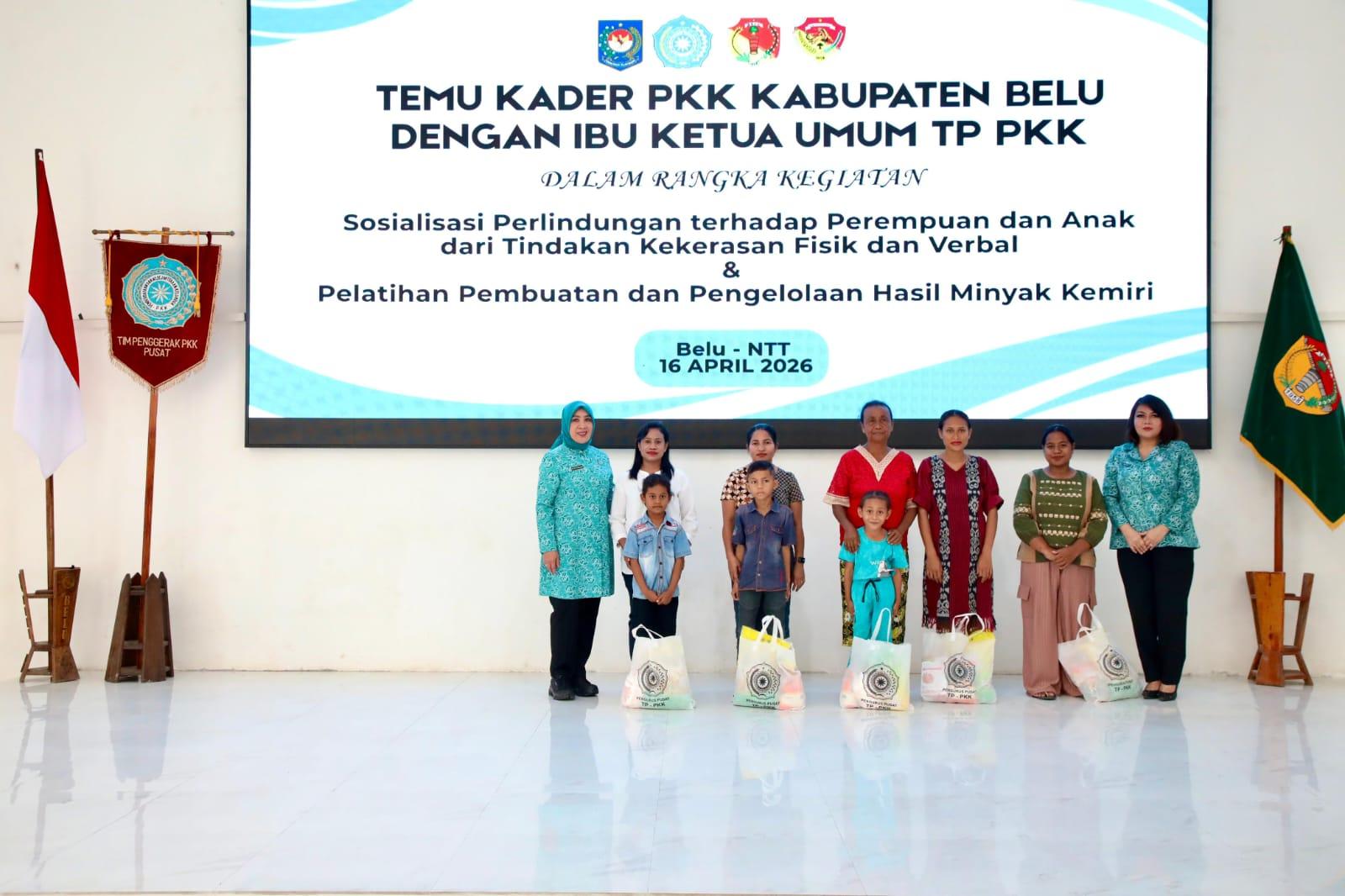 Penegasan tersebut disampaikan Tri saat menghadiri Temu Kader PKK Kabupaten Belu bersama Ibu Ketum TP PKK dalam rangka kegiatan “Sosialisasi Perlindungan terhadap Perempuan dan Anak dari Tindakan Kekerasan Fisik dan Verbal dan Pelatihan Pembuatan dan Pengelolaan Hasil Minyak Kemiri”. Kegiatan tersebut berlangsung di Gedung Wanita Betelalenok, Kabupaten Belu, Nusa Tenggara Timur (NTT), Kamis (16/4/2026).