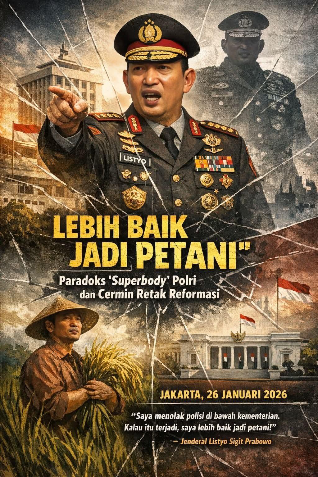 Pilihannya kini ada di tangan pembuat undang-undang: Apakah kita akan memaksa Polri masuk ke “kandang” kementerian dengan risiko lamban bergerak, atau kita menciptakan sistem pengawasan baru yang lebih fair sebuah jalan tengah di mana Jenderal Sigit tidak perlu beralih profesi menjadi petani, namun rakyat tetap bisa tidur nyenyak tanpa takut pada arogansi aparat.