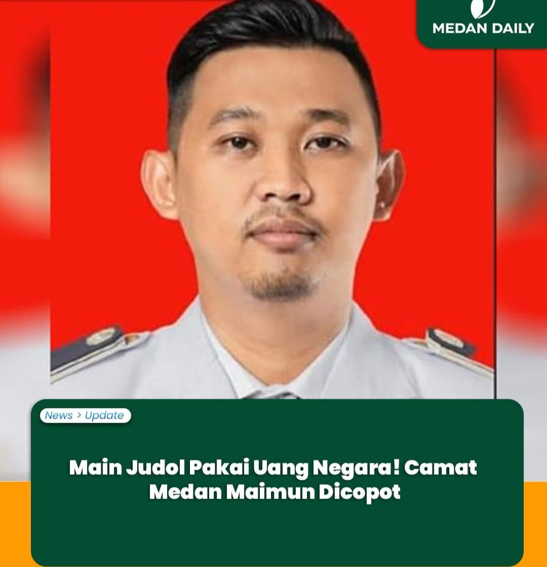 Radar Nusantara, Medan – Pemerintah Kota (Pemkot) Medan resmi mencopot Almuqarrom Natapradja dari jabatannya sebagai Camat Medan Maimun. Pencopotan dilakukan setelah yang bersangkutan terbukti menyalahgunakan Kartu Kredit Pemerintah Daerah (KKPD) senilai Rp1,2 miliar untuk aktivitas judi online dan kepentingan pribadi.