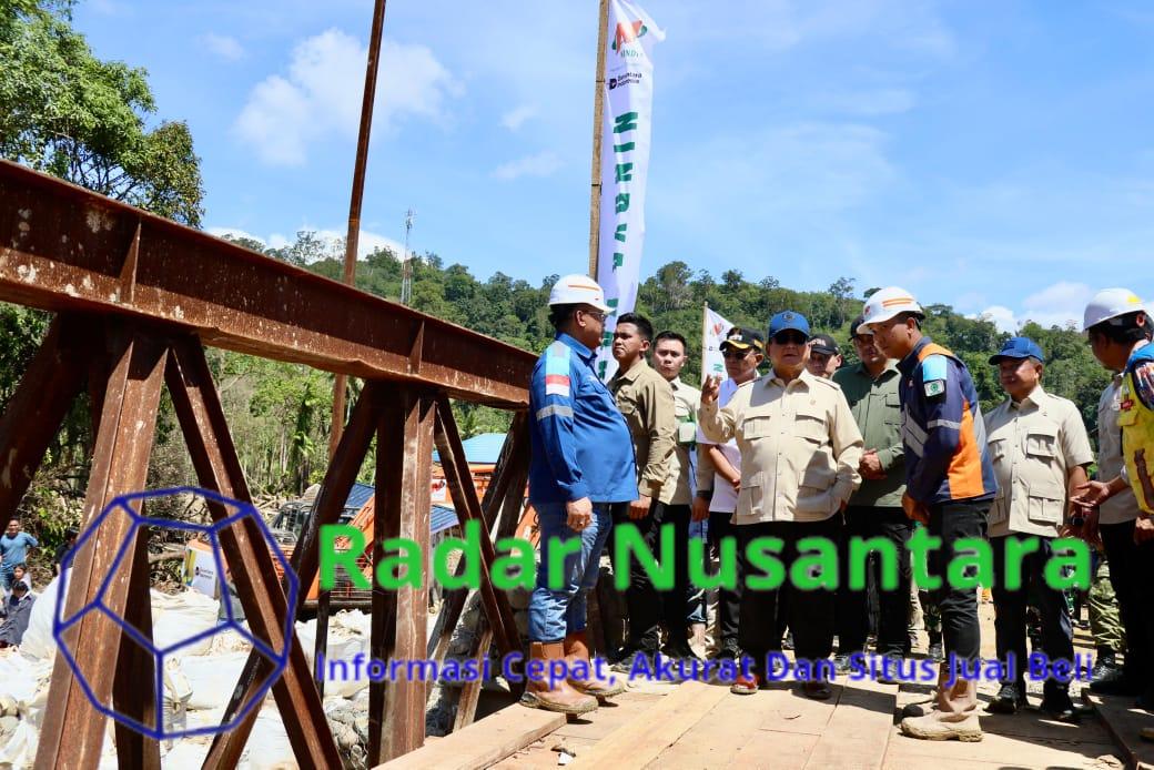 Presiden Prabowo bersama rombongan meninjau langsung pembangunan Jembatan Bailey Sungai Garoga yang berlokasi di Kecamatan Batang Toru. Jembatan sepanjang 44 meter ini dibangun sebagai solusi sementara namun strategis untuk menggantikan jembatan lama yang rusak akibat bencana alam dan sempat memutus akses ekonomi warga. Peninjauan tersebut dilakukan untuk mengawal percepatan penyelesaian infrastruktur penghubung yang memiliki peran vital bagi mobilitas masyarakat dan distribusi logistik antarwilayah.